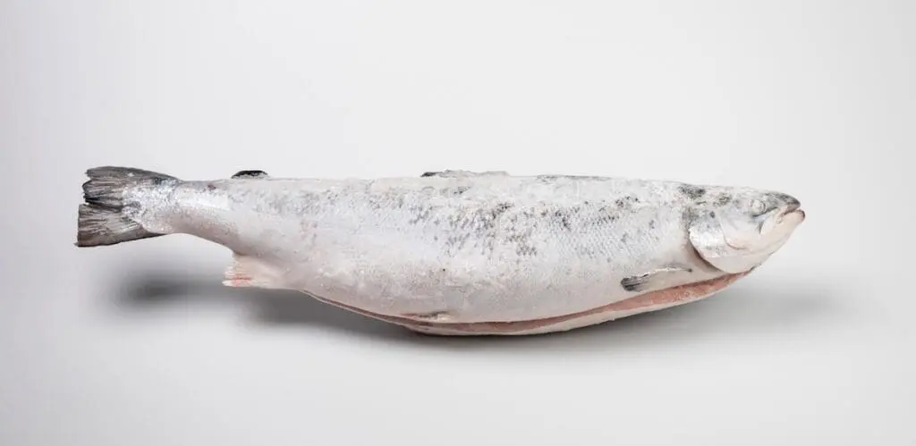 The salmon are placed in a plastic bag and packed and stored in a cardboard carton. The boxes are packed on euro pallets.
